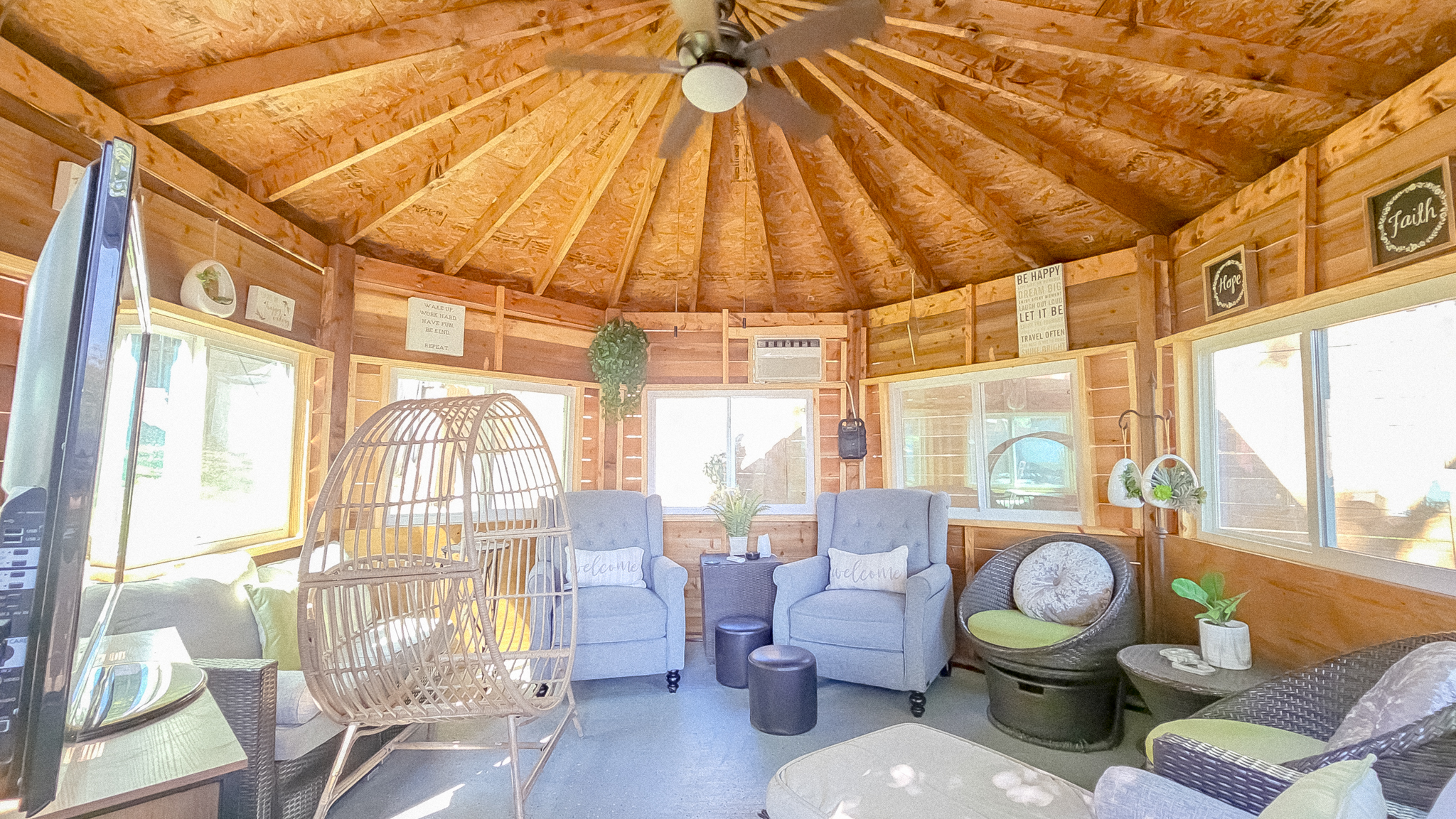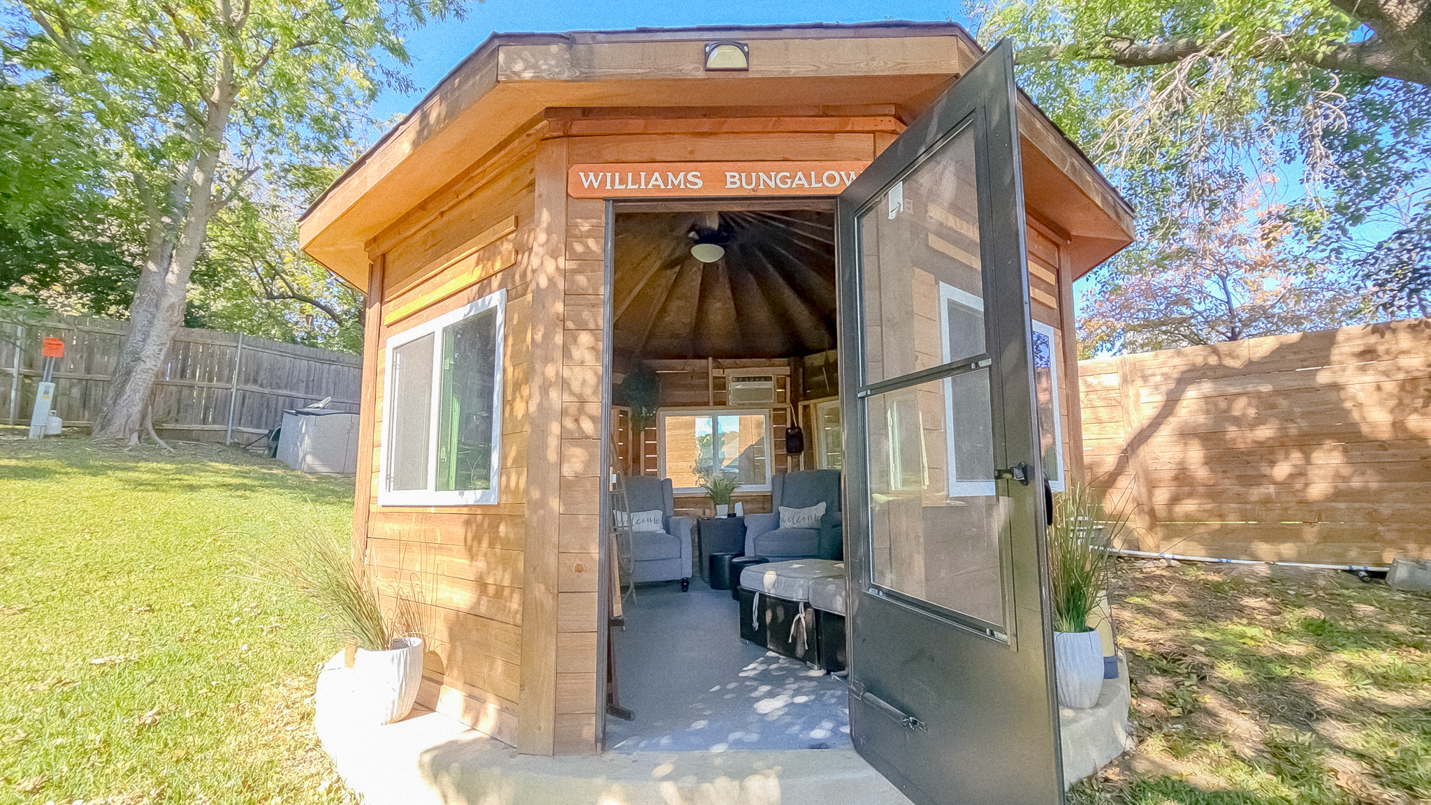 Enjoy lush St. Augustine grass, a powered bungalow ideal for a studio or guest space, and three pergolas — two for outdoor cooking and dining, plus another for relaxing evenings under the lights.